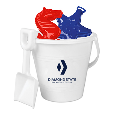 Scoop up promotional access and add it to sand castles everywhere with this sand pail and shovel set!